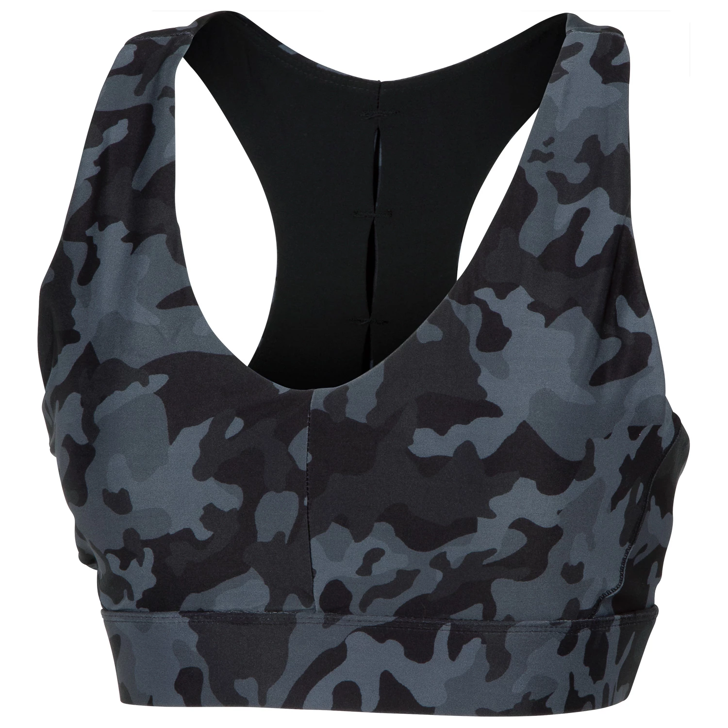 Activewear that’s as dynamic as you. Done in a fresh camouflage pattern, the printed v-front bra is a cropped tank top with removable cups and a keyhole back.